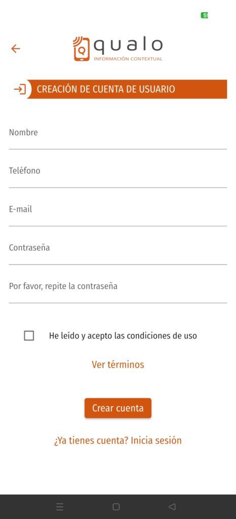 Una vez verificado que está activo, es posible que le solicite su registro, pero recuerde que no es necesario para utilizar QUALO, únicamente si desea recibir notificaciones de QUALO y participar en promociones, retos o en programas de fidelización de establecimientos o negocios. Puede saltarse este paso sin problemas y/o dejarlo para más adelante.