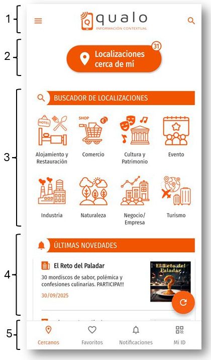Utilizar QUALO es muy sencillo. Una vez abierta, QUALO le mostrará la pantalla principal, en donde encontrará 5 áreas o bloques bien definidos: