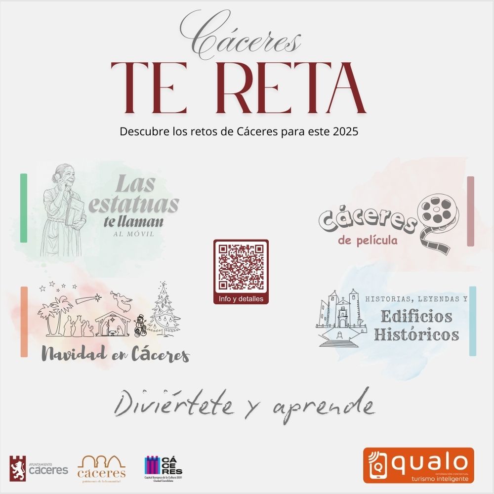 Este 2025 la ciudad se convierte en un tablero de juego donde cultura, historia, diversión y tecnología se dan la mano para ofrecerte una experiencia única: Cáceres te Reta.