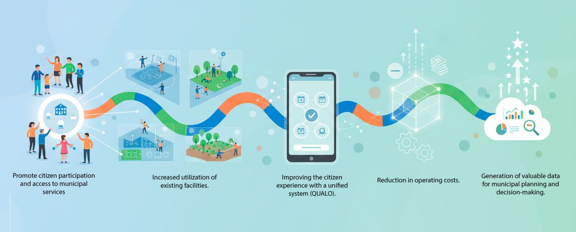 With this functionality, citizens can reserve public or private spaces, top up their virtual wallet, and manage automatic access using their QUALO ID. For the responsible administration or entity, QUALO offers a whole ecosystem of management, control, and loyalty tools, designed to simplify processes, optimize resources, and improve the user experience.
